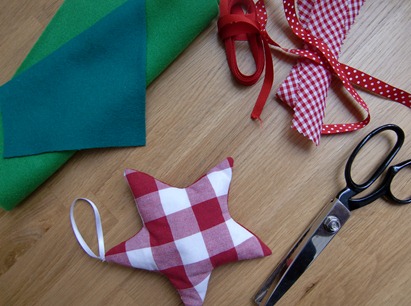 En la puerta principal coloqué un adorno pequeño reutilizando una estrella de tela que confeccioné hace ya tiempo.